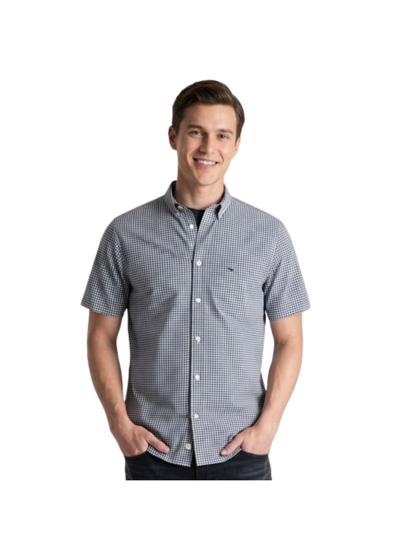 Aposte nesta despretensiosa camisa manga curta com gola button-down e xadrez gingham para compôr looks casuais.