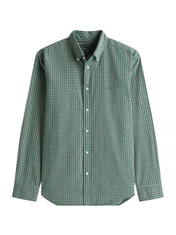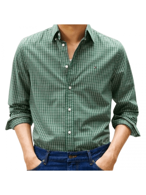 Camisa manga Longa Tommy Hilfiger Masculina TH FLEX Regular Fit Mini Xadrez Verde