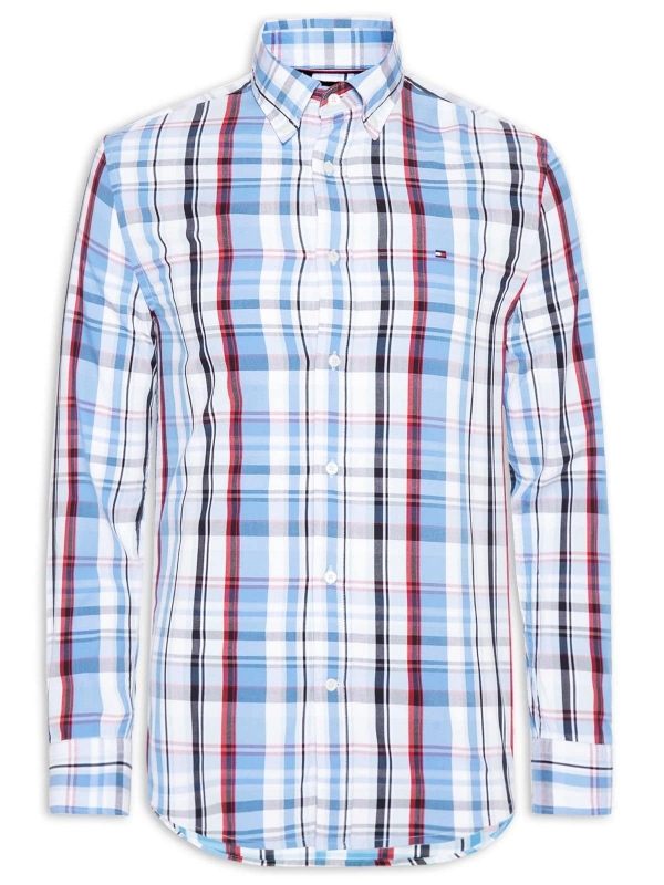 Descrição: Eleve seu guarda-roupa com o clássico estilo "Casual Chic" da Tommy Hilfiger. Esta camisa de manga longa apresenta um padrão xadrez atemporal em tons de azul e vermelho, perfeita tanto para o escritório quanto para eventos sociais no fim de semana.