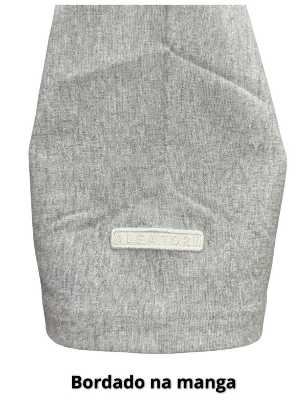 Detalhe Especial: Aplicação da marca em patch bordado na manga, reforçando a identidade premium da peça.