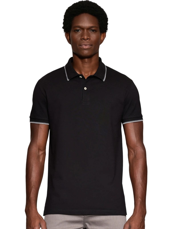 Camiseta Masculina Polo Básica Preta Aramis Regular Frisos - Preto